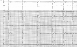 Tracé 1.11: Fibrillation atriale et trouble de conduction atrioventriculaire
