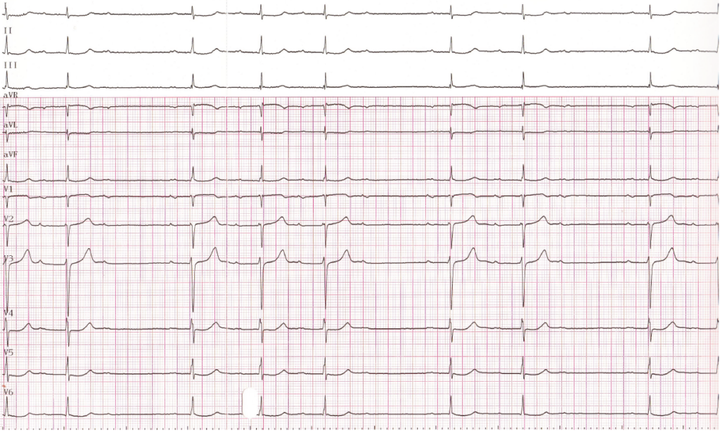 Quelle(s) est(sont) la(les) réponse(s) vraie(s) concernant le(s) diagnostic(s) sur cet ECG à l’entrée dans le service de cardiologie?