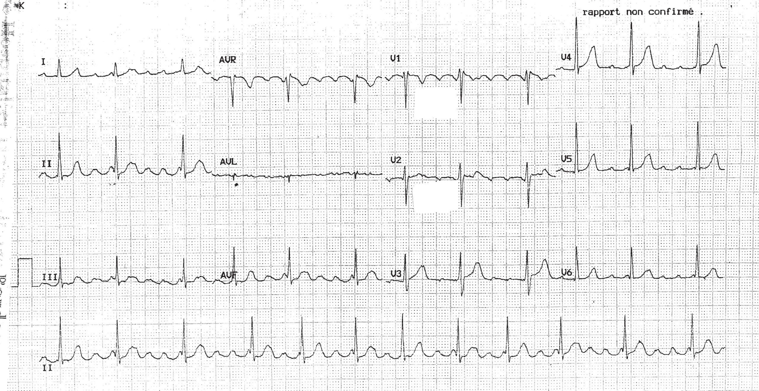 Femme de 54 ans obèse; hospitalisation pour palpitations; enregistrement de l’électrocardiogramme
