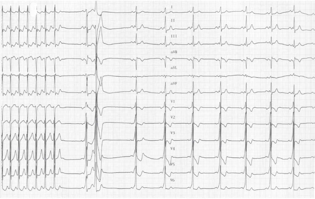 Tracé 7.4: Tachycardie orthodromique sur voie accessoire