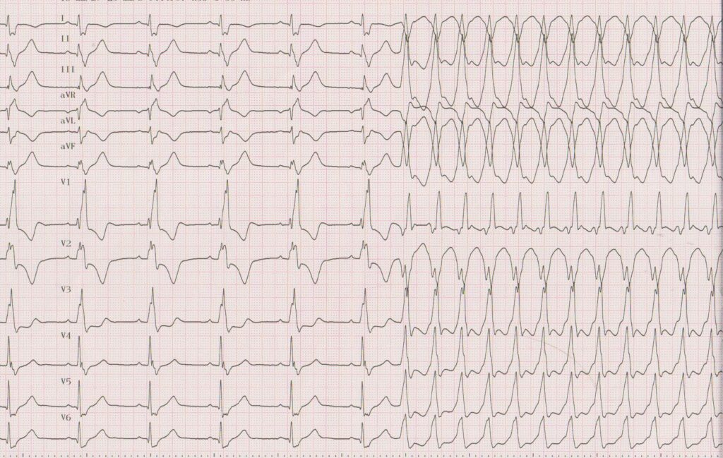 Les patients ayant bénéficié d’une chirurgie réparatrice de tétralogie de Fallot présentent un risque accru de mort subite et une incidence élevée de troubles du rythme ventriculaire a été décrite. Tout comme pour les arythmies atriales, l’association entre séquelles électrophysiologiques chirurgicales (patch de fermeture de la communication inter-ventriculaire, patch infundibulaire, ventriculotomie) et conditions de charge et de pression ventriculaires droites altérées au long cours favorise la survenue d’arythmies par réentrée. La dysfonction ventriculaire gauche observée après une évolution prolongée qu’elle soit systolique ou diastolique pourrait également être un facteur déterminant dans la genèse d’arythmies ventriculaires compromettant le pronostic vital du patient. La constatation de cette prévalence élevée et la compréhension des mécanismes des arythmies a favorisé la modification des habitudes chirurgicales avec préférence pour un abord atrial plutôt que par ventriculotomie plus délabrante pour la fonction et l’activation ventriculaire droite. L’électrocardiogramme permet d’évaluer pour partie le risque de mort subite. En effet, l’existence d’un QRS élargi (> 180 ms) ainsi que d’une dynamique de la durée du QRS (augmentation rapide de la durée du QRS) sont des facteurs reconnus comme associés avec un risque accru de mort subite. Il est probable qu’une analyse plus fine de l’aspect du QRS (recherche d’une fragmentation importante, reflet de l’activation anormale et chaotique des ventricules) pourrait également dans le futur être intégrée dans un algorithme d’évaluation du risque.