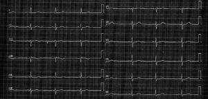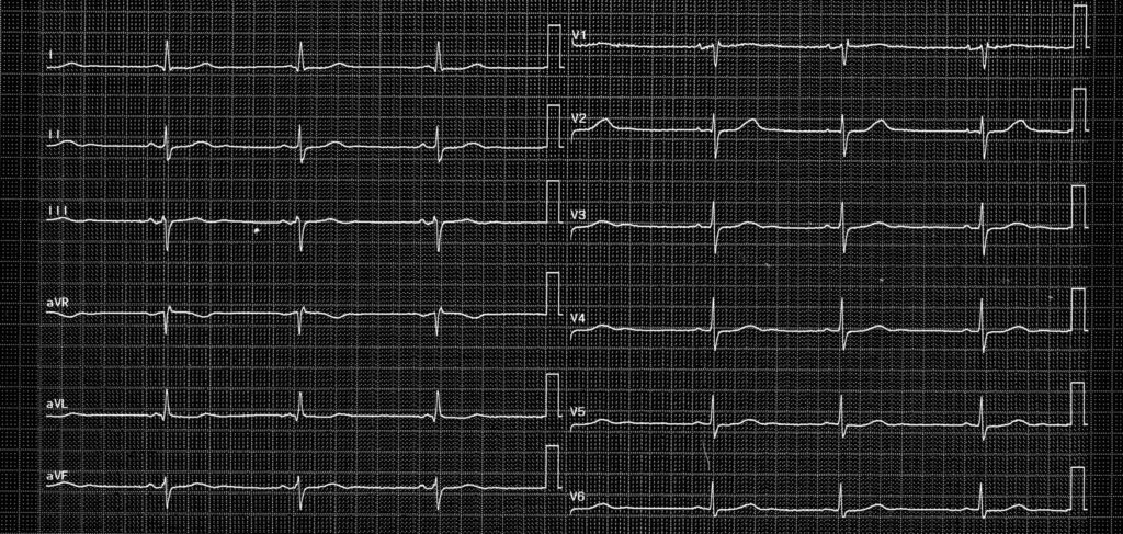 Homme de 64 ans, hypertendu traité par amlodipine; électrocardiogramme de surface de contrôle; patient asymptomatique