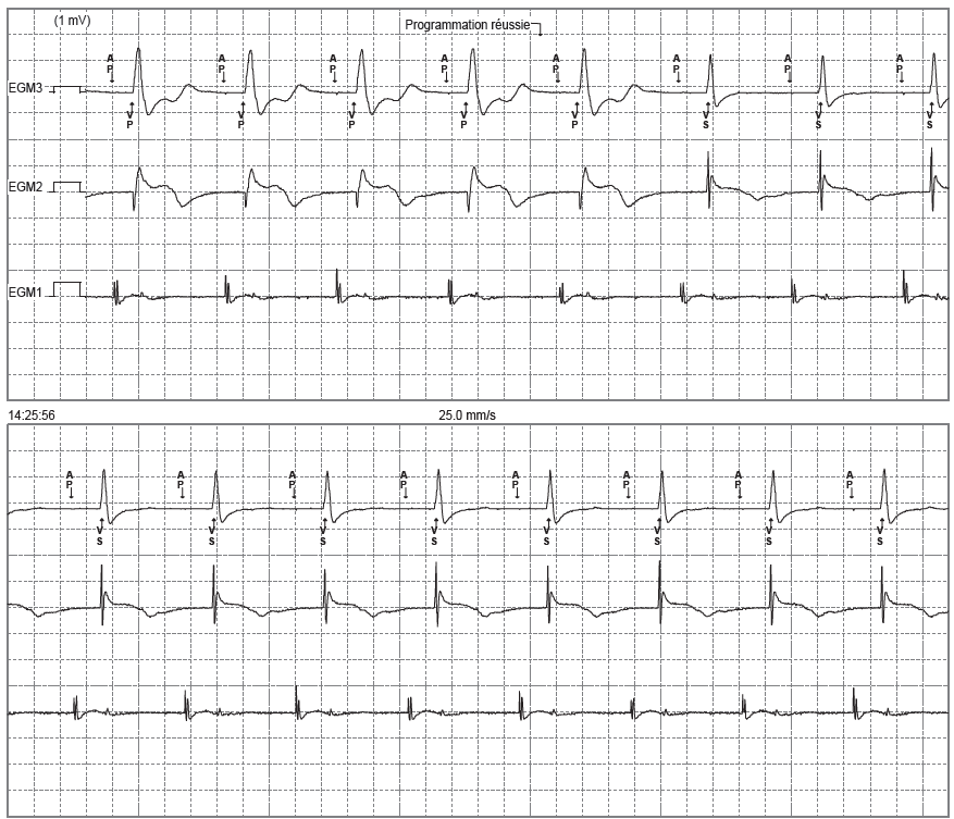 L’EGM confirme la reprise de la conduction spontanée après programmation du mode MVP (programmation réussie);