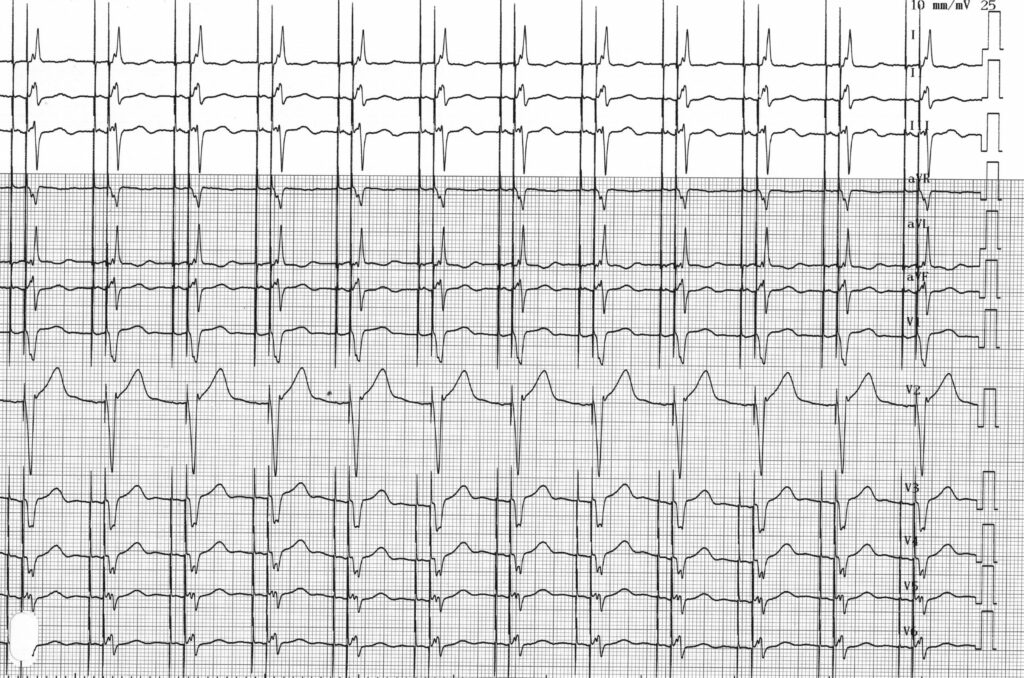 Tracé identique mais stimulation atriale et ventriculaire en mode unipolaire;