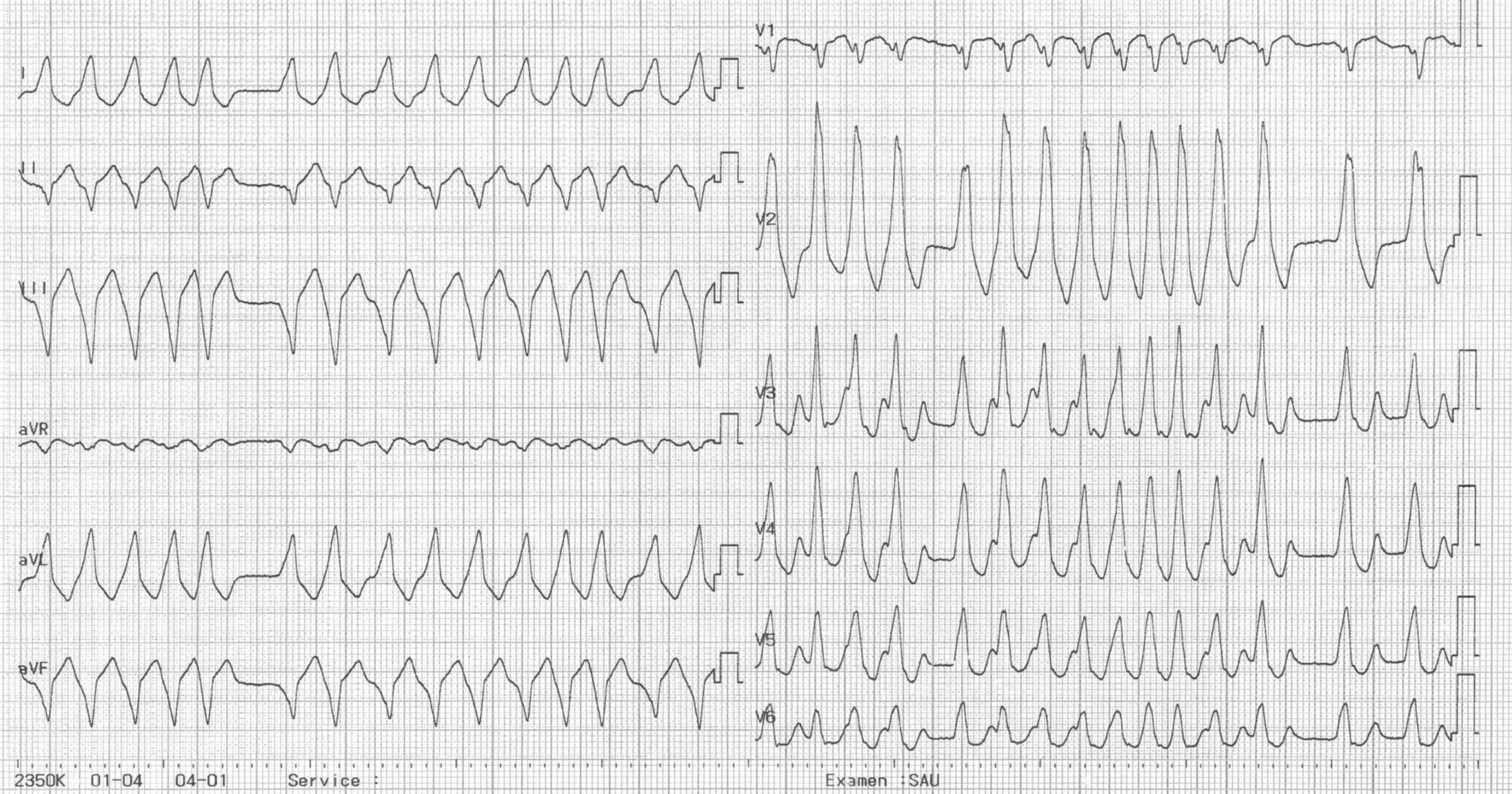 Ce patient a bénéficié d’un choc électrique sous brève sédation; rythme sinusal avec aspect de pré-excitation (PR court, onde delta) latérale gauche;