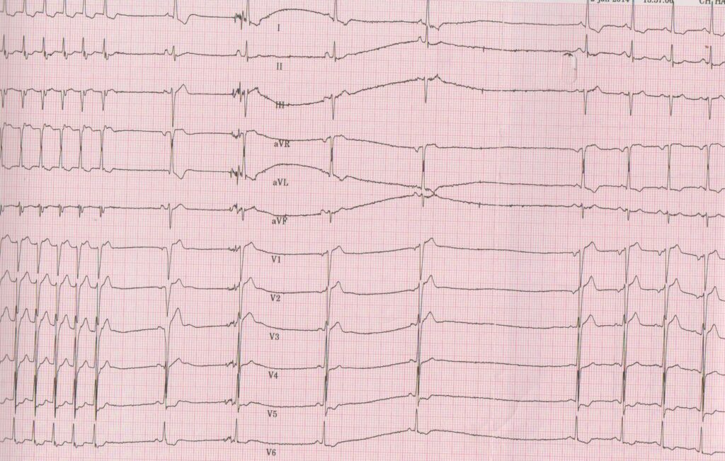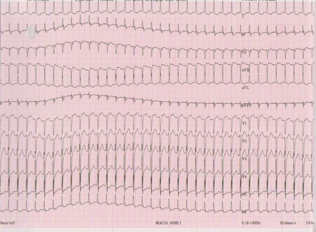 Ce type de tachycardie présente certaines caractéristiques électrocardiographiques: • L’électrocardiogramme entre les crises est le plus souvent normal;
