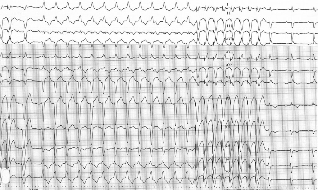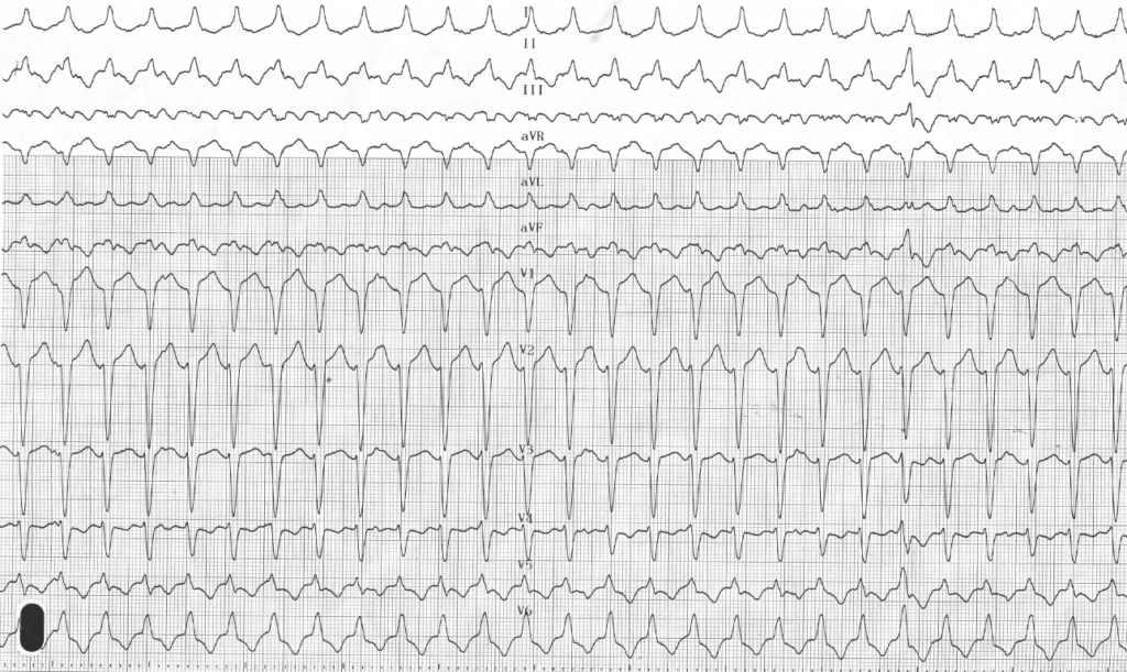 Tracé 8.3: Tachycardie ventriculaire sur dysplasie arythmogène du ventricule droit