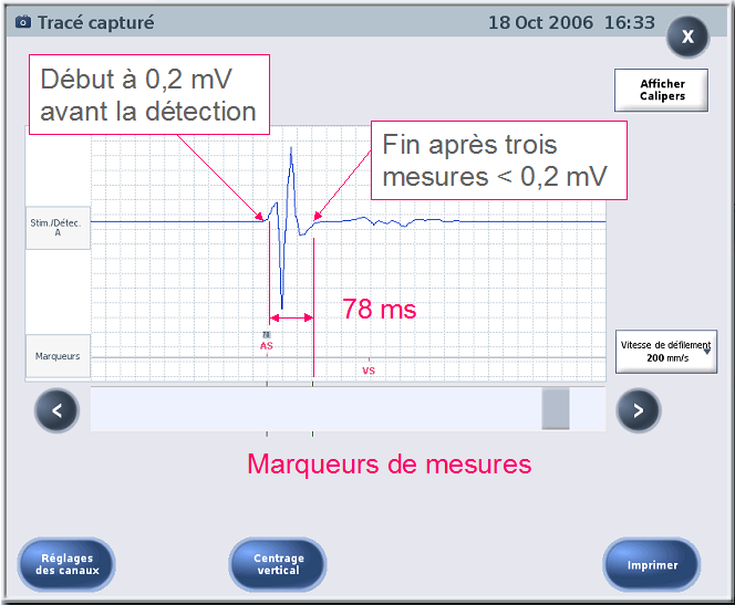 Le délai AV optimal après détection correspond à la largeur de l'onde P + 30 ms si la largeur de l'onde P > 100 ms et à la largeur de l'onde P + 60 ms si la largeur de l'onde P < 100 ms.