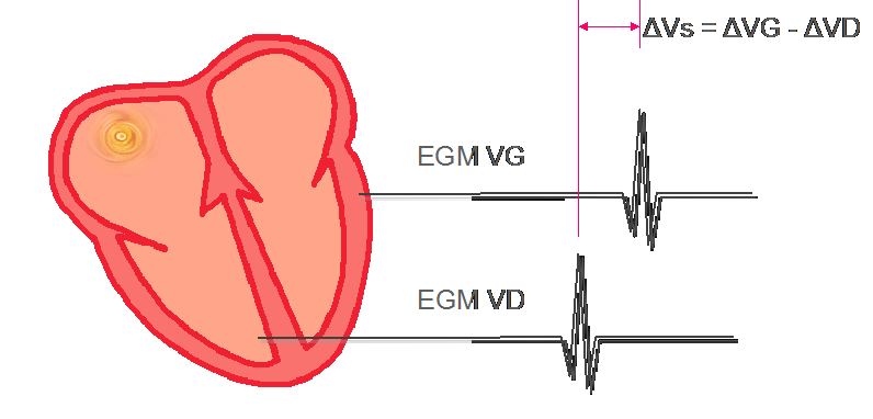 • mesure du délai entre l'activation du ventricule droit et du ventricule gauche en rythme spontané