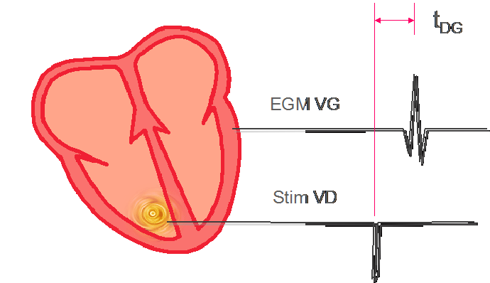 tDG : temps entre RV et LV pendant la stimulation du ventricule droit