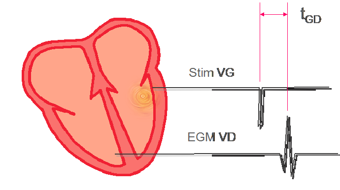 • mesure du temps de conduction RV-LV (stimulation RV)