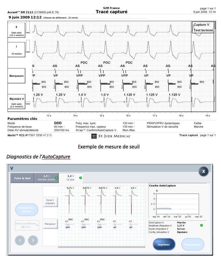 - Ventricular AutoCapture on : mesure du seuil de stimulation ventriculaire + adaptation de la programmation avec surveillance cycle par cycle ;