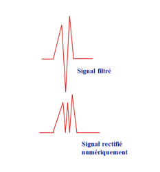 Après le filtrage, le signal est également redressé numériquement. La détection est basée sur un signal monophasé.