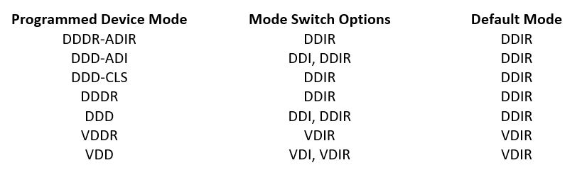 Le passage à la stimulation est le mode auquel l'appareil revient lors du changement de mode. Les choix de modes de commutation de mode sont basés sur le mode programmé de l'appareil.
