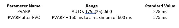 - après un PVC, le PVARP est automatiquement prolongé jusqu'à PVARP + 150 ms, jusqu'à un maximum de 600 ms.