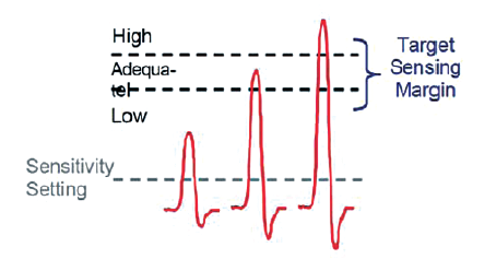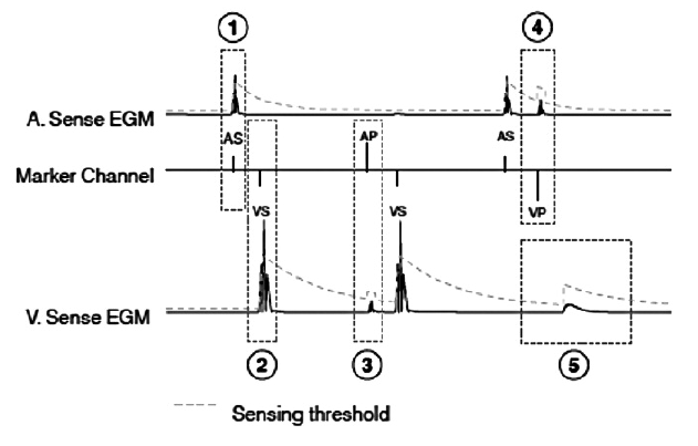 Selon l'âge de la série de stimulateurs cardiaques, de Kappa, EnPulse, Sensia, jusqu'au modèle Adapta, une valeur de sensibilité fixe peut être programmée pour toute la durée du cycle cardiaque. Par ailleurs, dans les séries de stimulateurs Ensura, Advisa et ultérieures, comme dans le générateur d'impulsions des défibrillateurs, la détection automatique est adaptée à l'amplitude du signal précédent et change tout au long du cycle cardiaque.