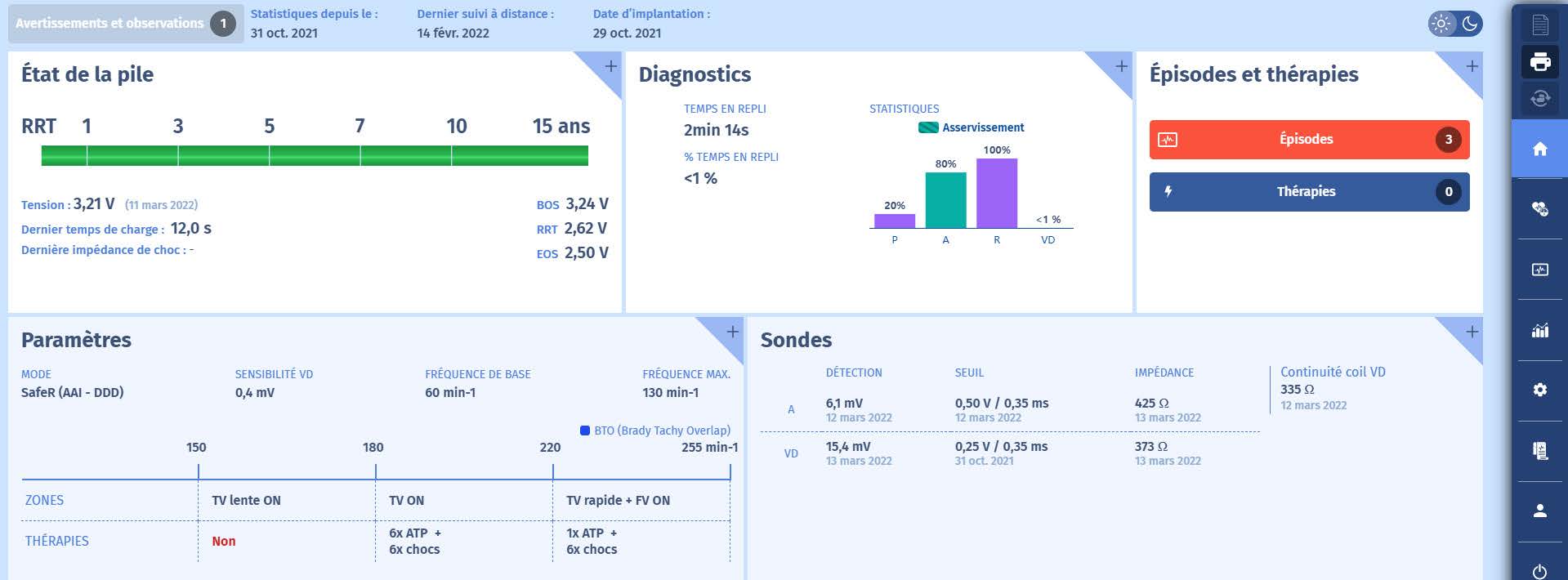 Un patient de 70 ans atteint de cardiomyopathie ischémique et porteur d'un DAI à double chambre se présente au cabinet pour un contrôle du dispositif.