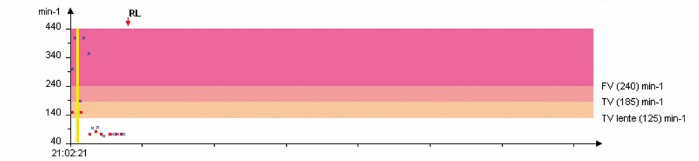 - Une zone lente commençant à 125/min, 30 cycles de persistance, avec SAT et séquences de chocs.