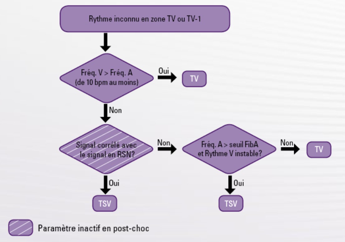 La première étape Freq V > Freq A est déterminante ; quand ce critère est vérifié, l'analyse s'arrête avec un diagnostic de TV
