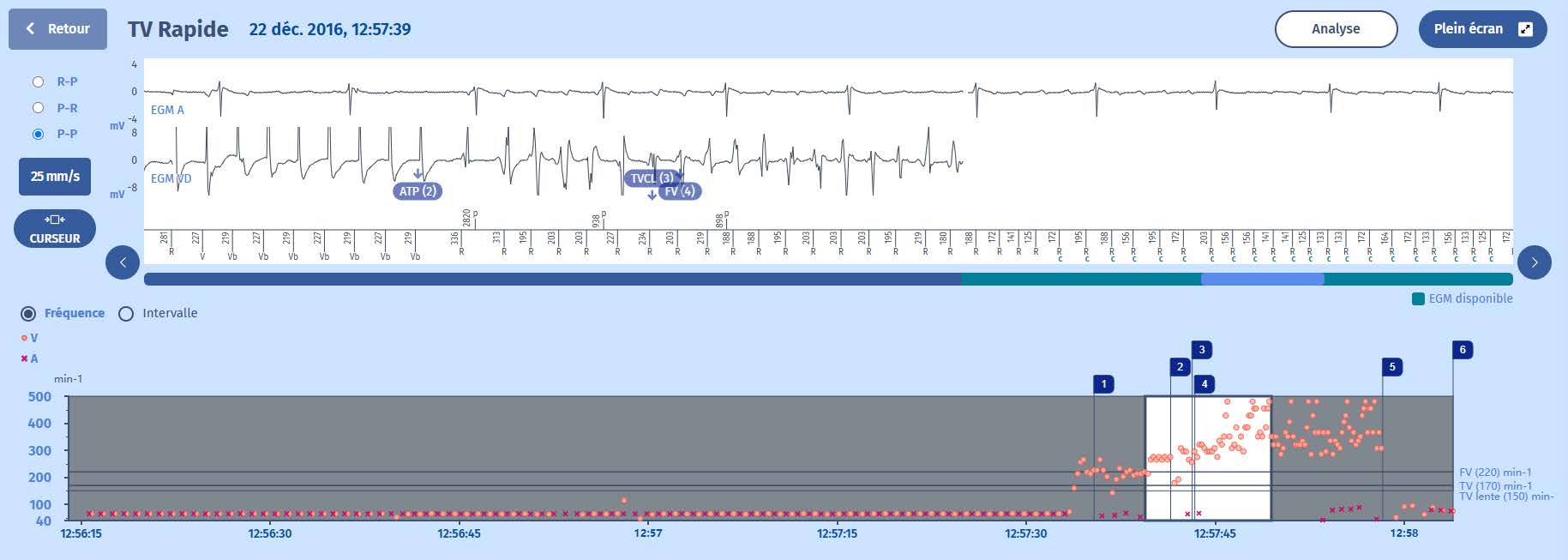 Cet exemple explique la séquence des thérapies dans la zone TVR/FV.