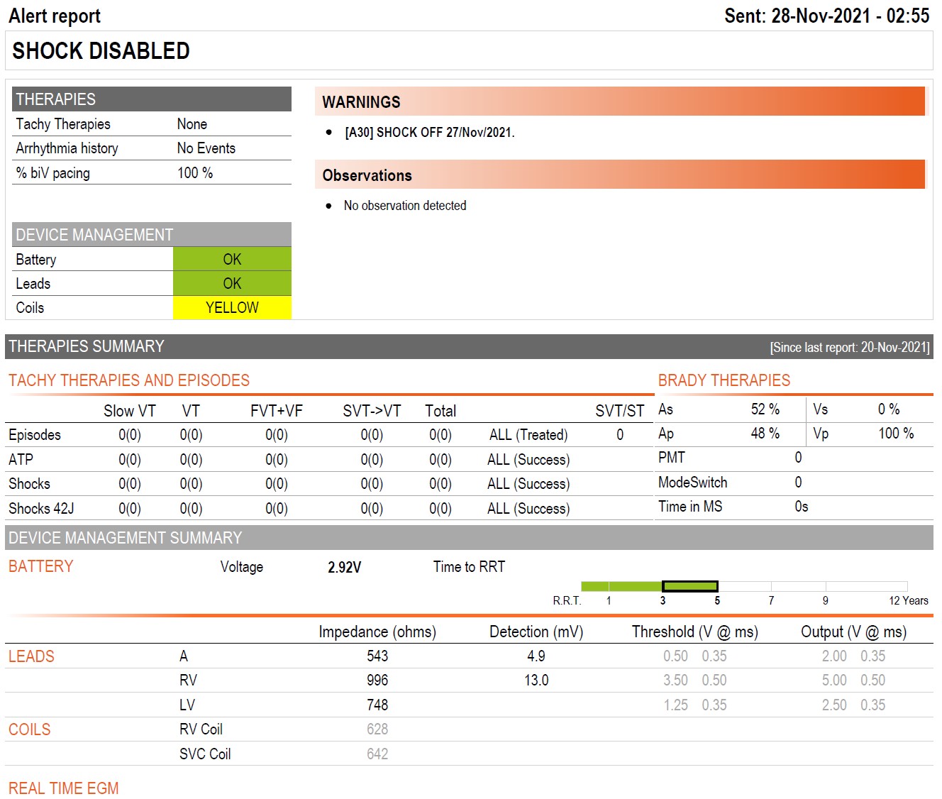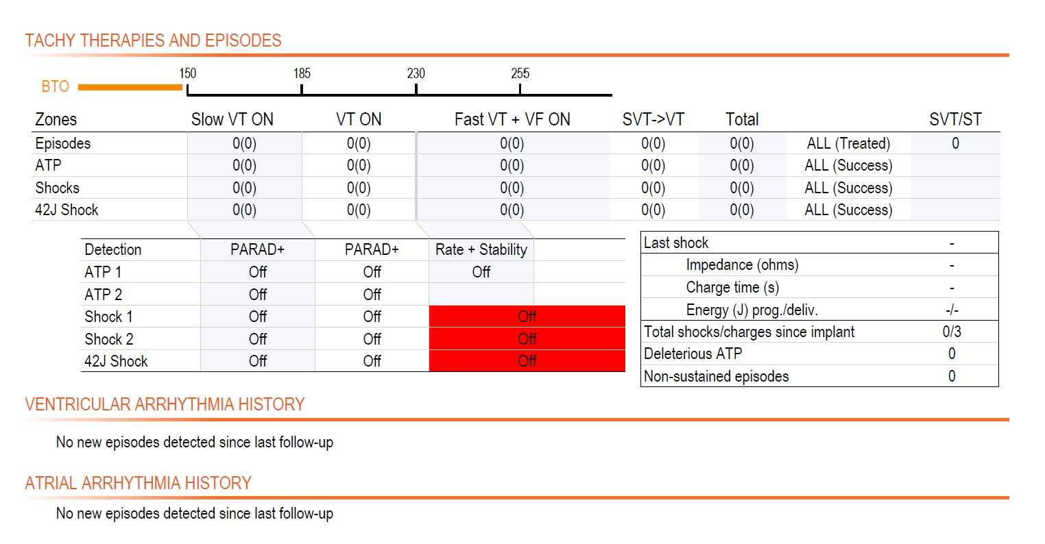 Dans les DAI contemporains dotés d'une télésurveillance continue, les thérapies désactivées seront envoyées sous forme d'alerte lors de la prochaine transmission. Les thérapies peuvent