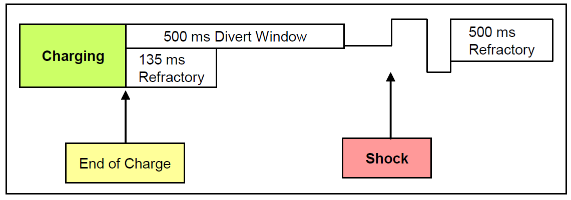 Une durée de fréquence soutenue (SRD en anglais) correspond à une minuterie qui peut être programmée pour la détection initiale et indépendamment en post-choc (15 secondes sur cette figure, mais non programmées dans le cas). Ces durées s'auto activent lorsque l'on modifie les paramètres d'amélioration de la détection