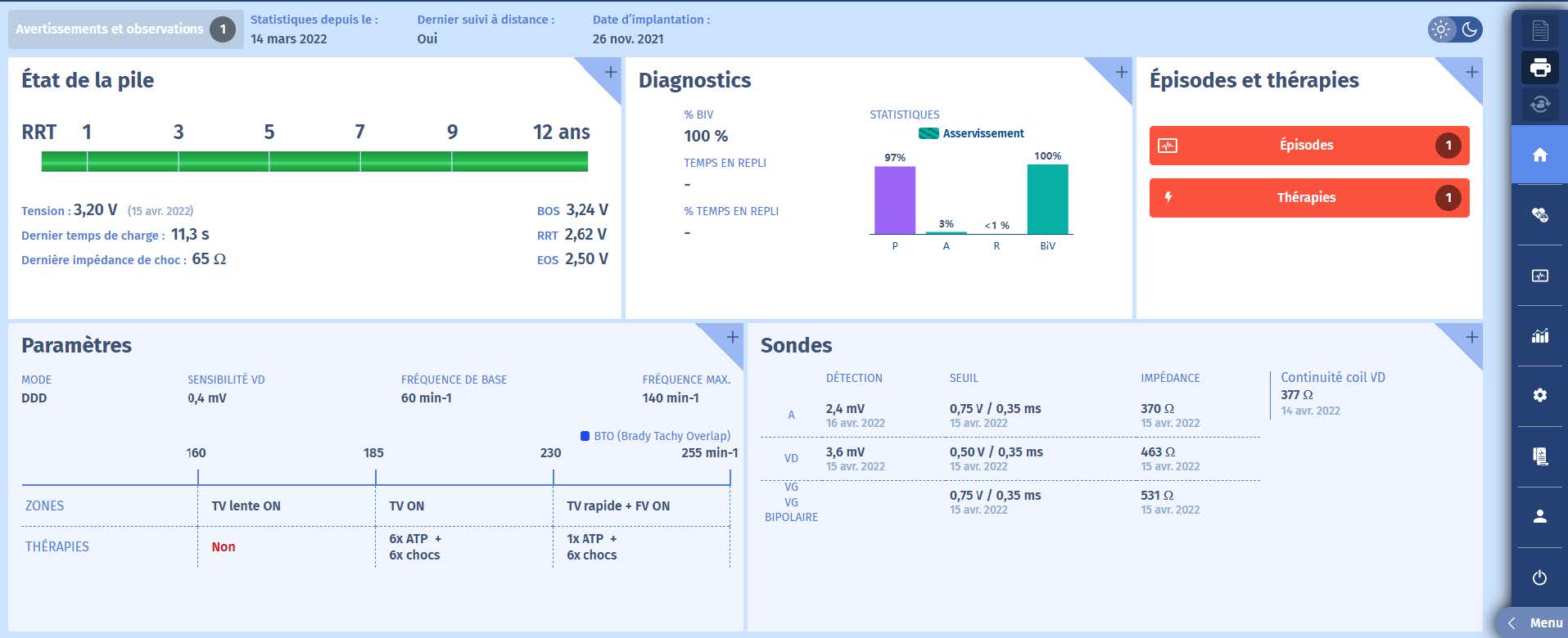 Voici l'écran, remarquez qu'il y a eu un épisode avec des thérapies ;