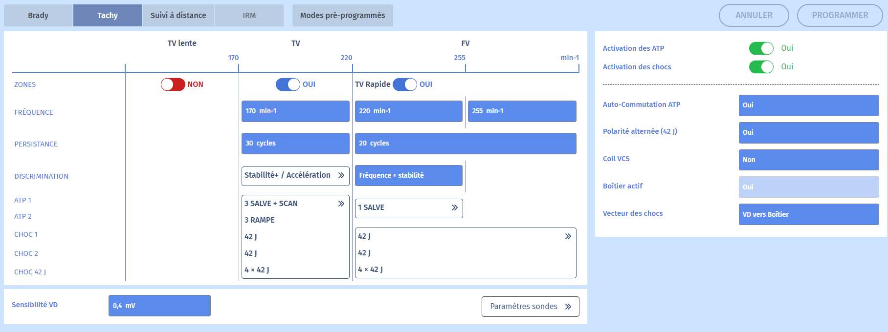 soudaine, elle est diagnostiquée comme une TV. Comme ces trois caractéristiques ne changent pas au cours de la persistance, les thérapies continueront à être administrées jusqu'à ce que la fréquence ventriculaire ralentisse et sorte de la zone de tachycardie. Ceci est problématique car la tachycardie sinusale a tendance à s'accélérer lorsqu'un patient subit des chocs.