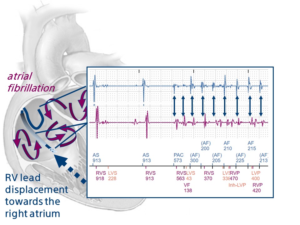 Early displacement of a right ventricular lead into the atrium - Resonate CRT