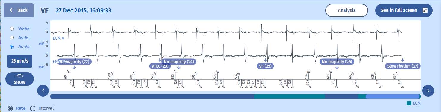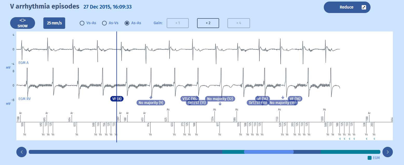 - It is clear that the ventricular detections with very short RR intervals do not correspond to any ventriculogram on the ventricular EGM. It is therefore oversensing.