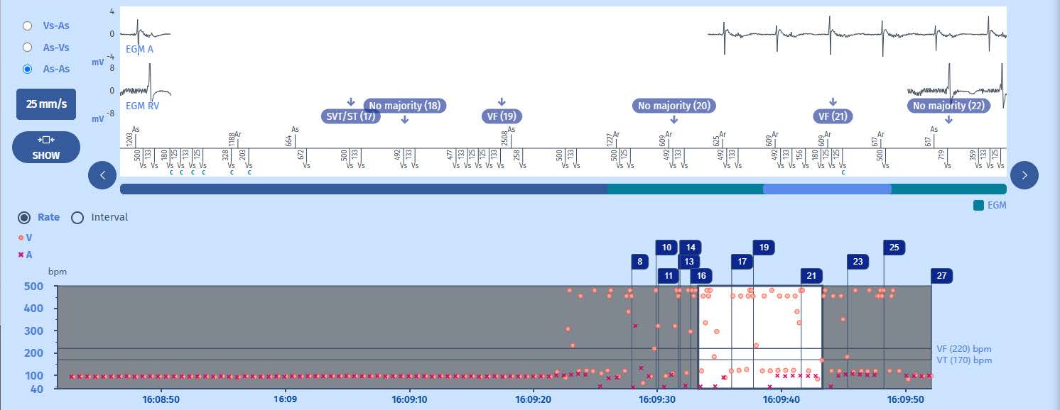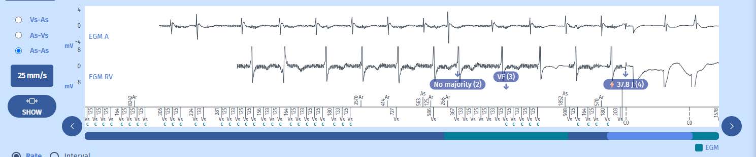 In this example, the patient was recently implanted in primary prevention for obstructive hypertrophic heart disease. He experienced a sudden syncope, has a family history of