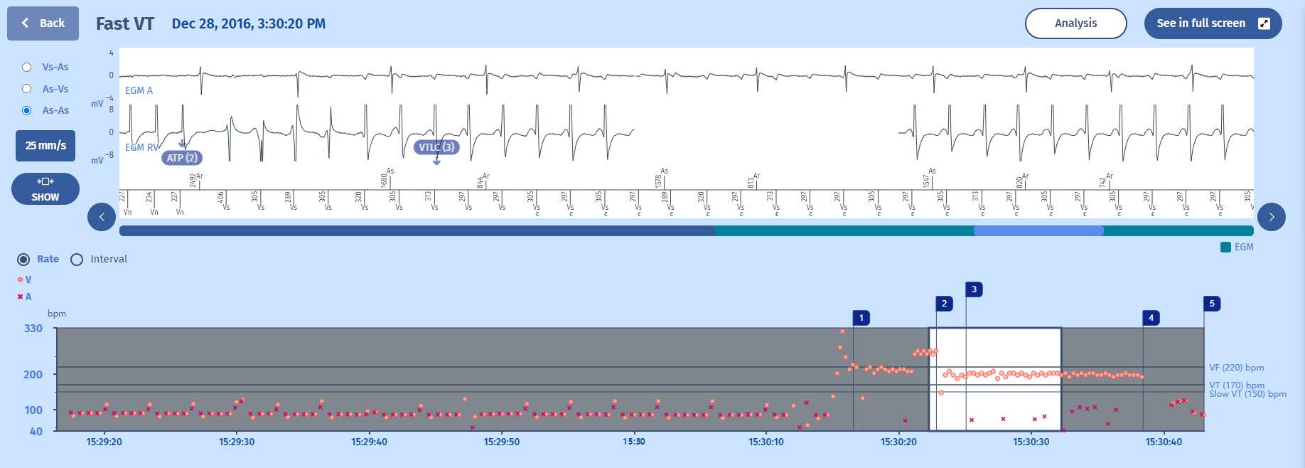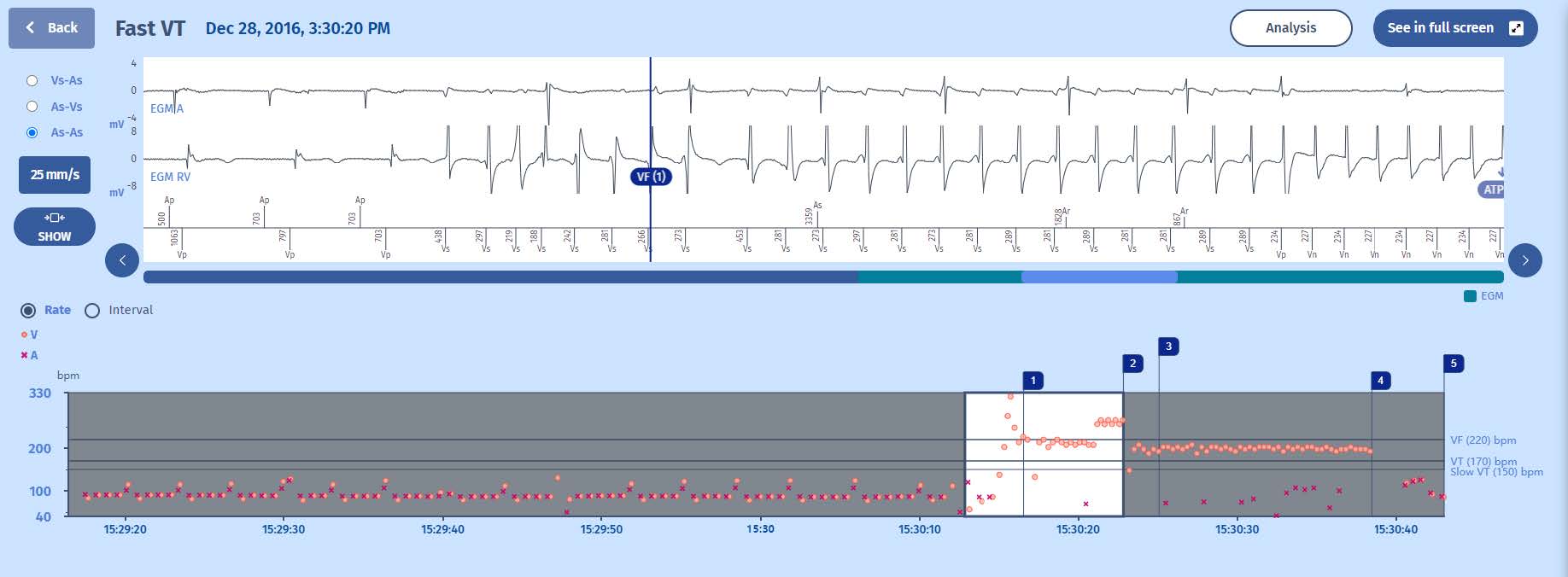 - This episode occurs in a context of a nocturnal rhythmic storm since several ventricular tachycardias occurred in less than 24 hours, terminated by Fast VT ATPs. These resulted in palpitation symptoms and telemedicine alerts. The patient recalls a high