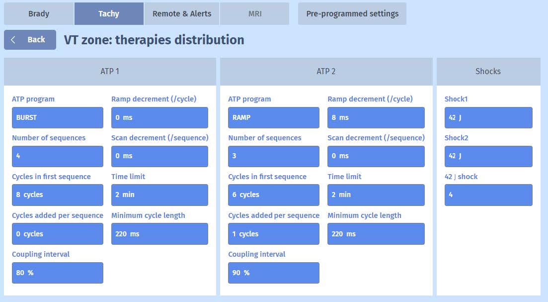 The first triggered therapy is the first therapy programmed for the designated zone of the tachycardia, or that previously determined by the Autoswitch ATP function.