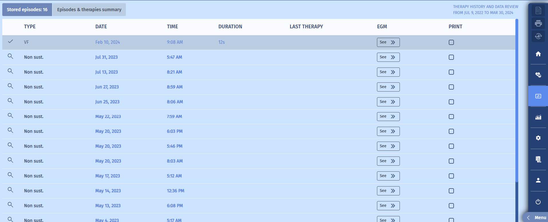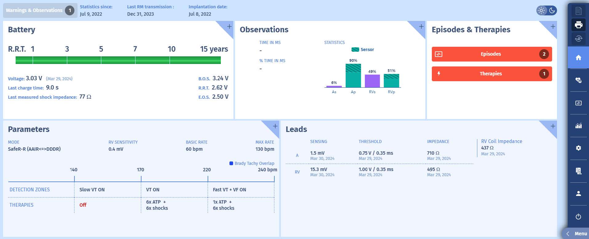 You interrogate the device in the emergency department after sensation of lightheadedness: